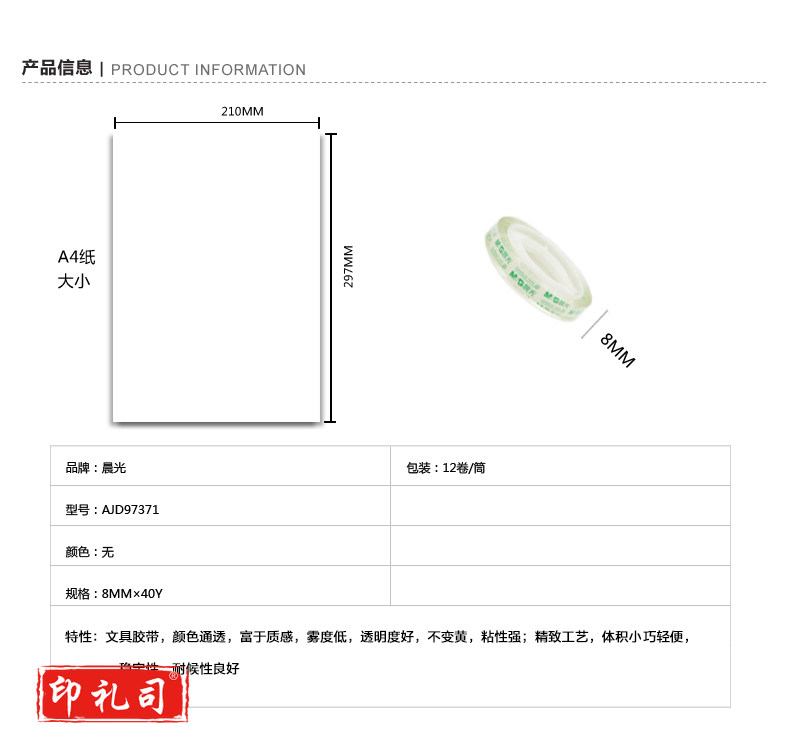 晨光AJD97371 文具胶带8mm*40y(12卷)