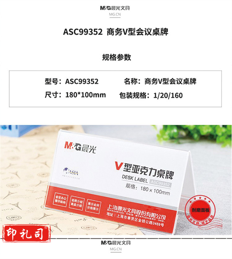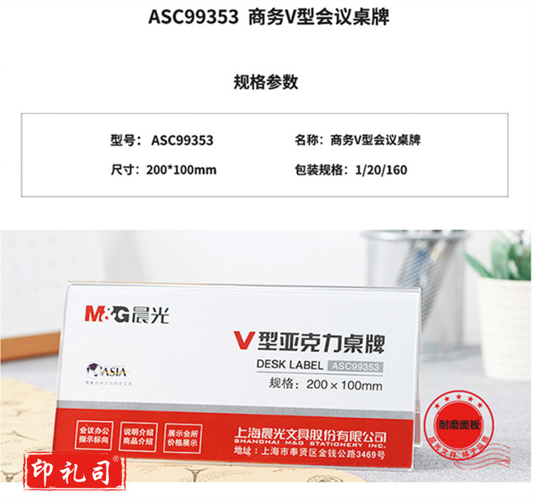 晨光 ASC99352 商务V型会议/桌牌180*100mm 3个装