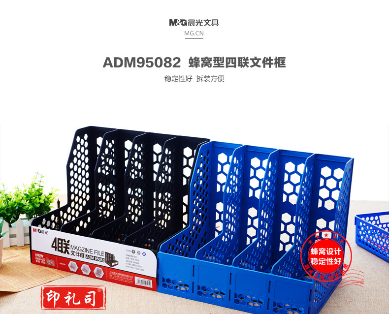 晨光 ADM95082 蜂窝形四联文件框 灰色