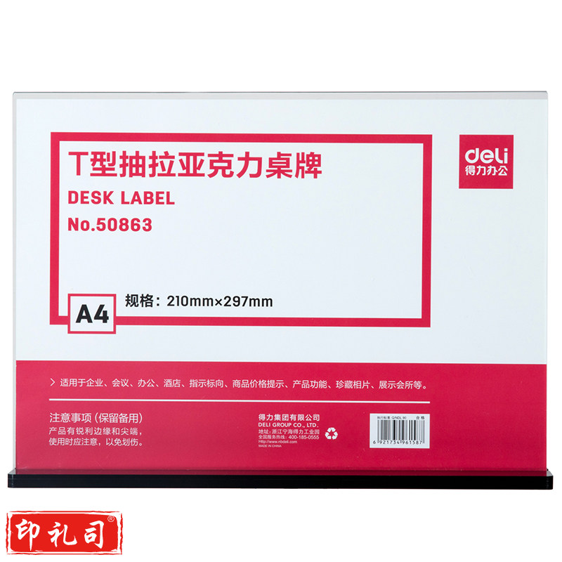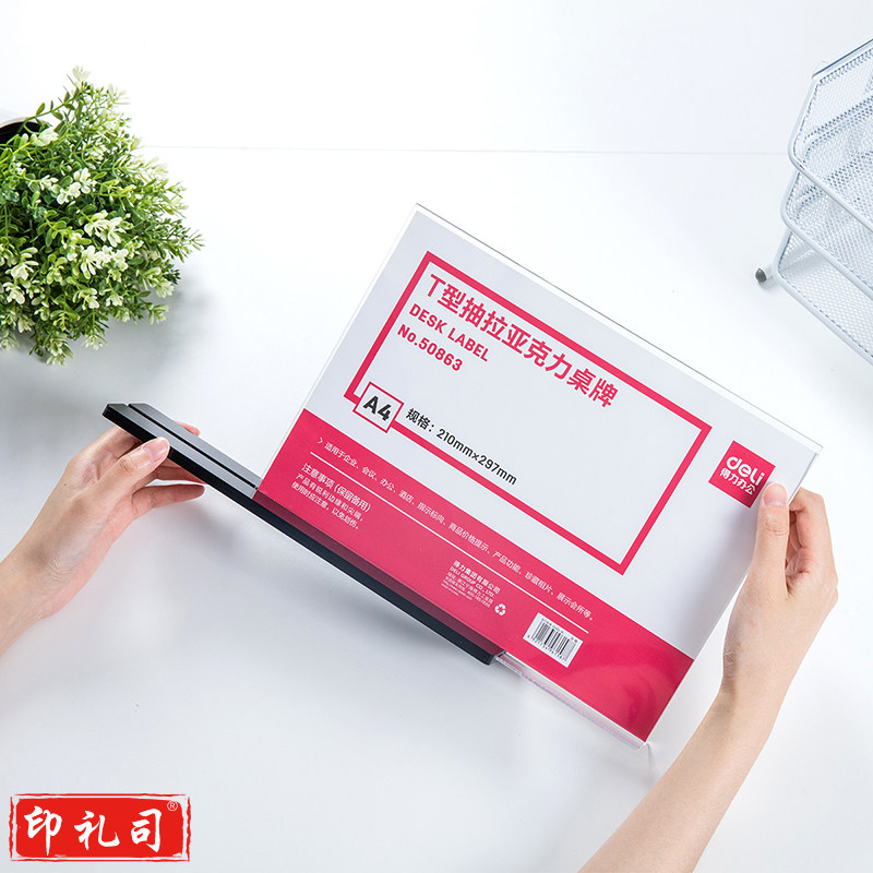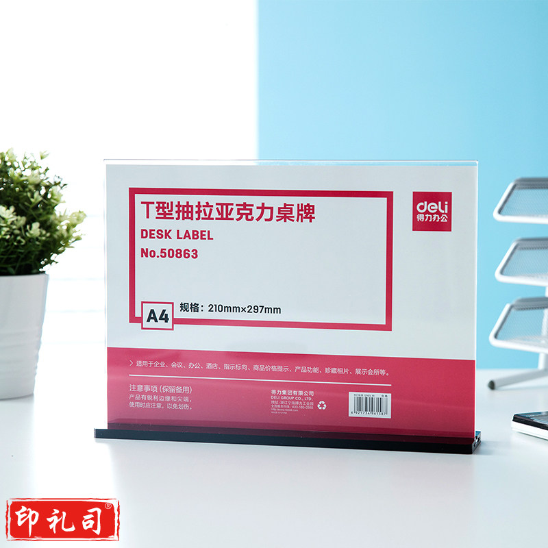 得力 50863 T型抽拉亚克力桌牌(透明)