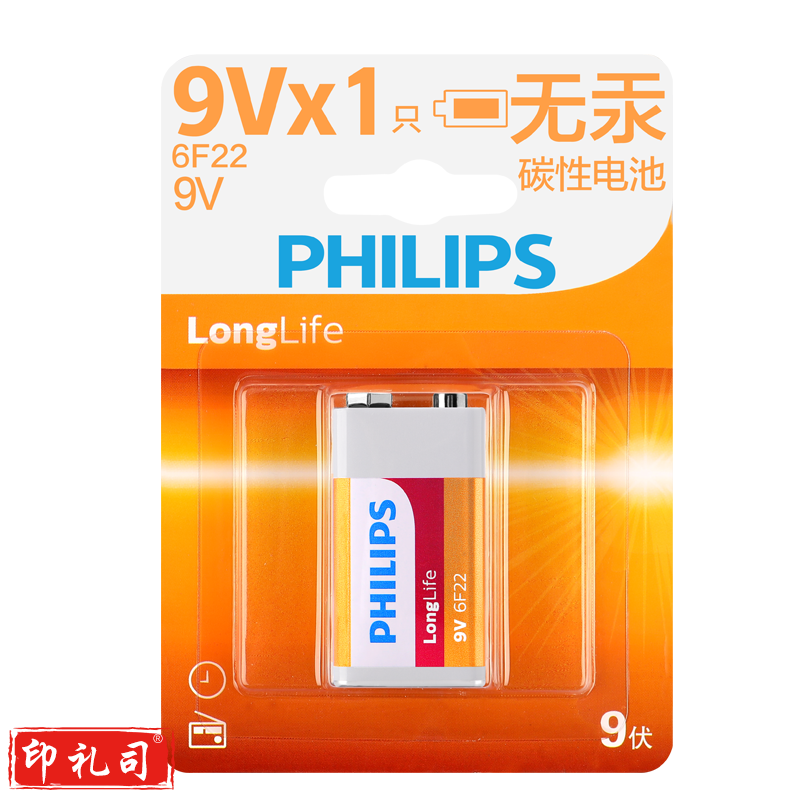 飞利浦 9V碳性电池1粒装九伏6F22方形 适用于遥控器/无线麦克风/万用表等