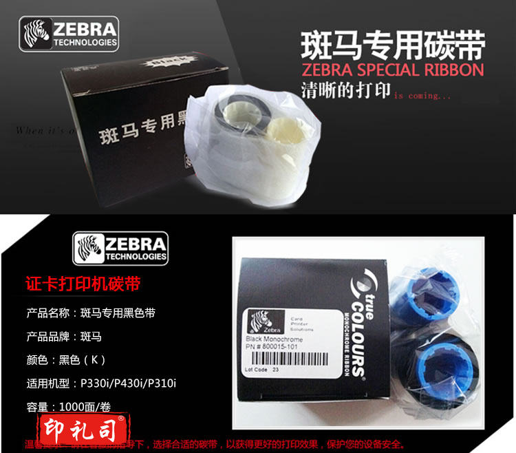 斑马 P330i证卡打印机原装彩色带黑色带 800015-101黑色色带