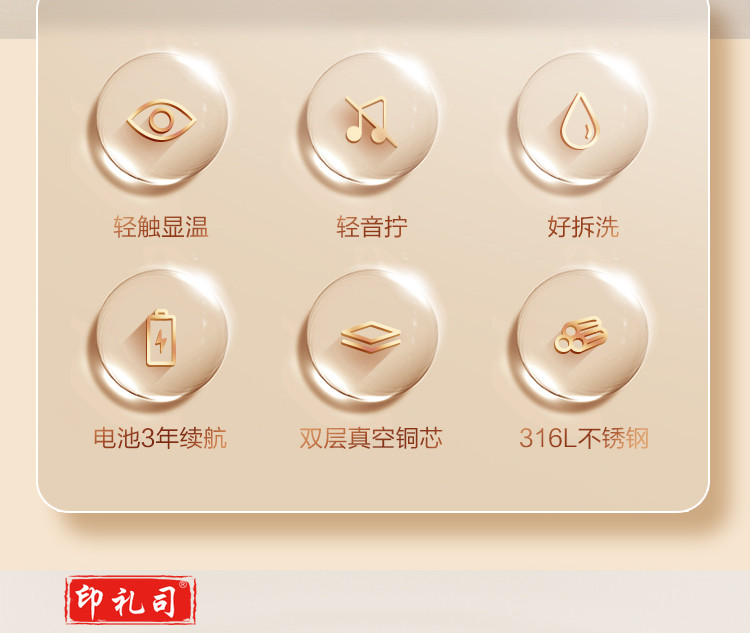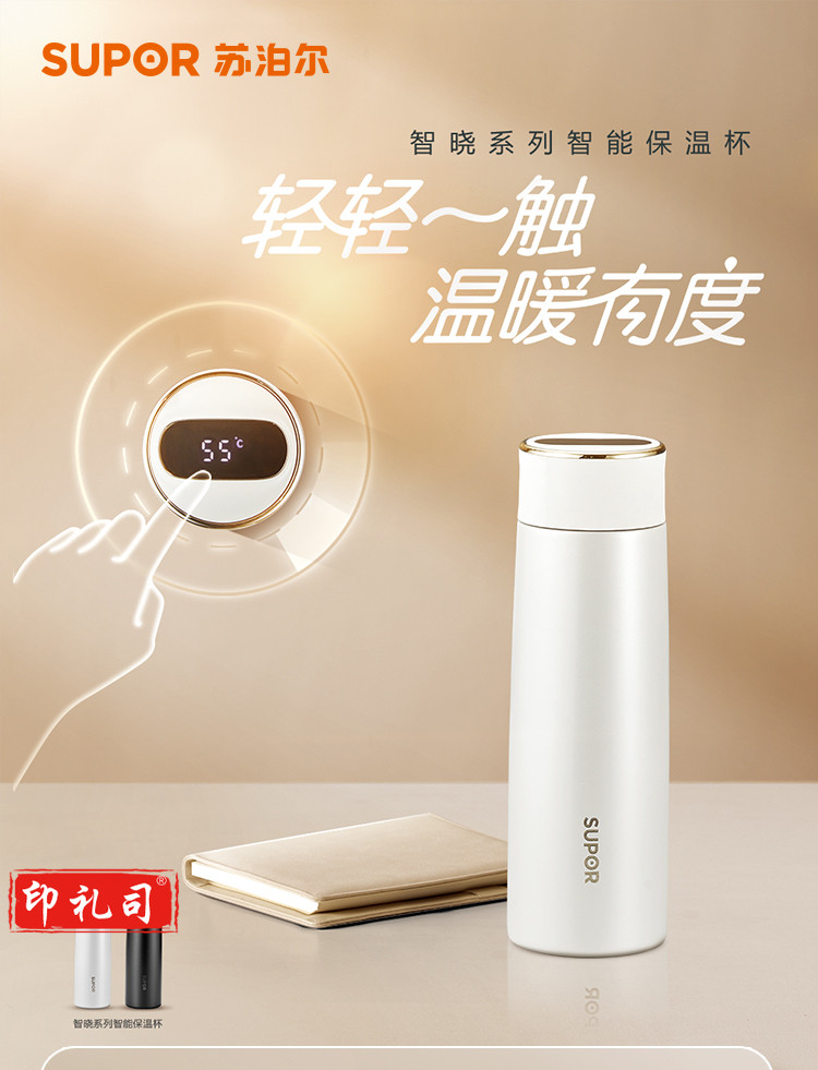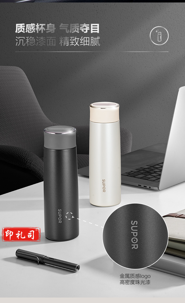 苏泊尔KC43HW10 316L不锈钢 办公商务智能显温保温杯430ML 晶石黑