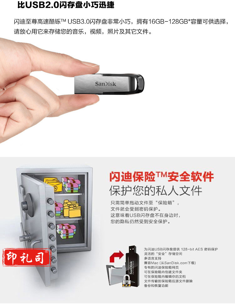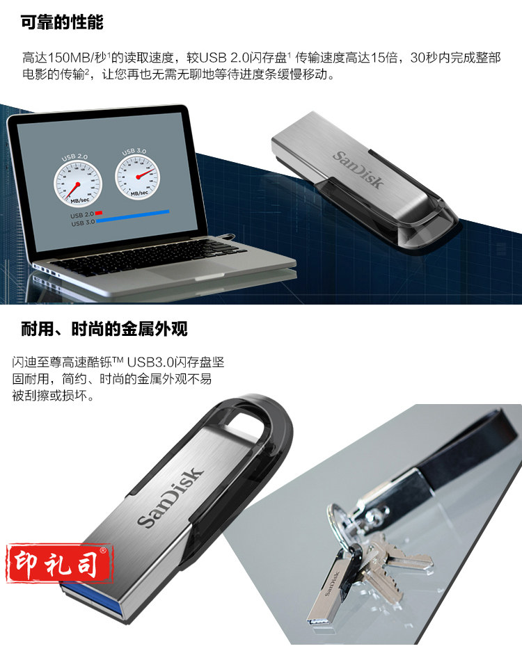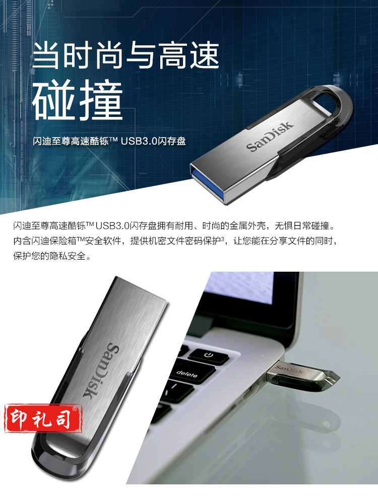 闪迪(SanDisk) 64GB USB3.0 U盘 CZ73酷铄 银色 读速150MB/s 金属外壳