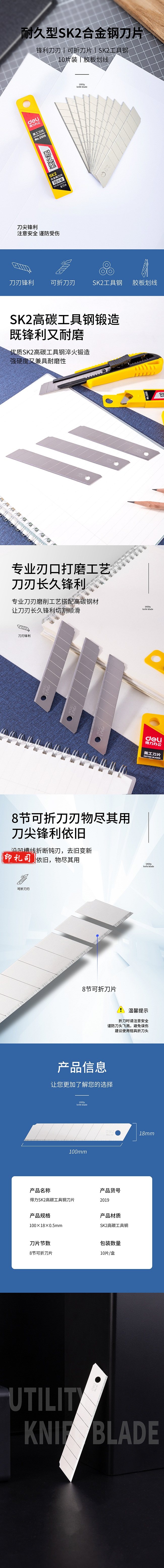 得力 2019 美工刀片大号耐久型(银色)(10片/盒)