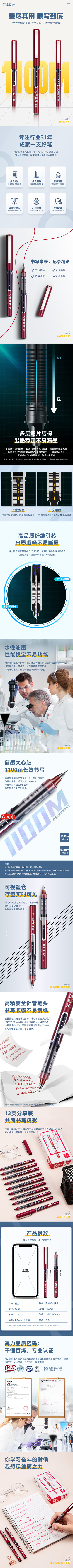 得力 S657 直液式走珠笔(红)