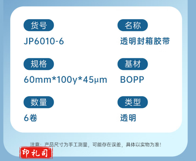 齐心(Comix)透明胶带封箱胶带JP6010-6 宽60mm*100y*45um 长91.4米/卷 6卷装