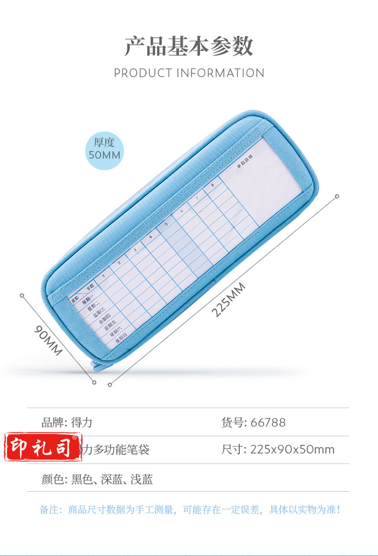 得力(deli)66788 笔袋 PC+ABS材质 尺寸220*45*100mm 颜色随机