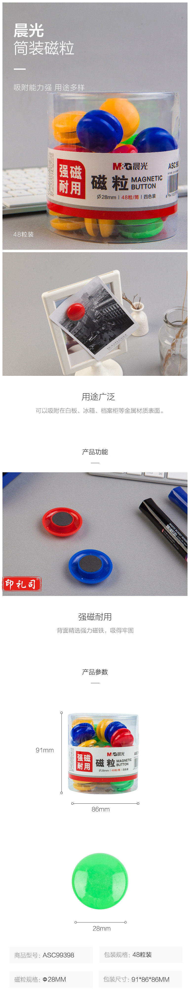 晨光ASC99398强磁粒白板专用磁扣磁钉磁贴48粒装Φ28mm