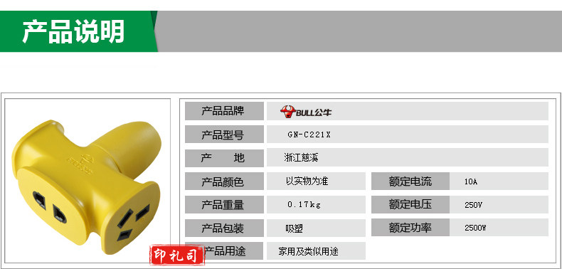 公牛GN-C221X10米接线板摔不烂延长线插插座