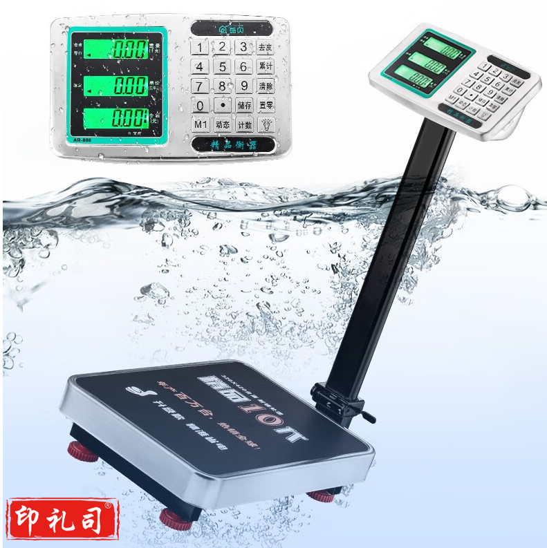 酷贝(Kubei)商用防水电子秤台秤折叠磅秤台称不锈钢头计价地磅落地式市场水果工业公斤 高配150KG液晶黑字加厚