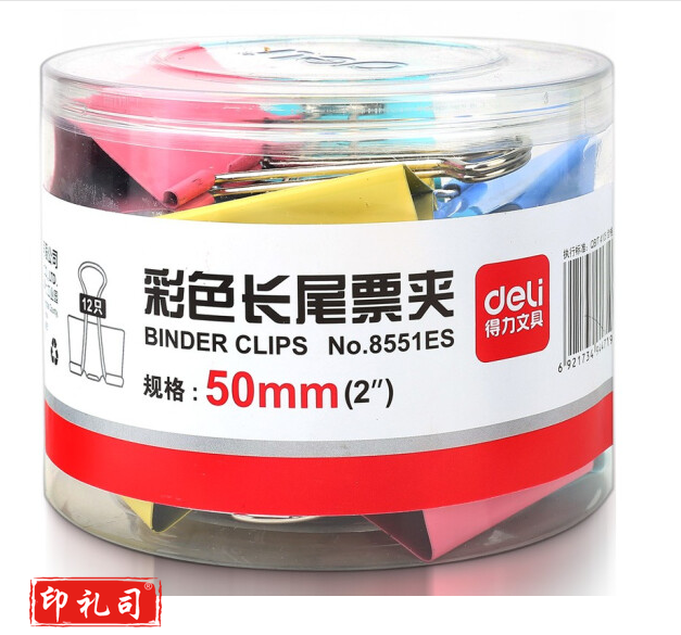 得力8551ES彩色长尾票夹筒装(混)(12只/筒)