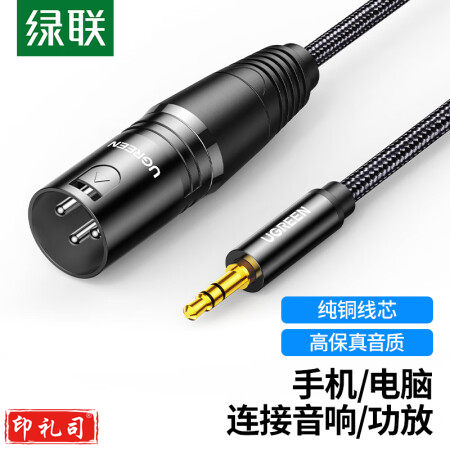 绿联15238 3.5mm转卡侬公头音频线公对公连接线 手机电脑接音响功放调音台转接线 3.5公转卡农公头1米