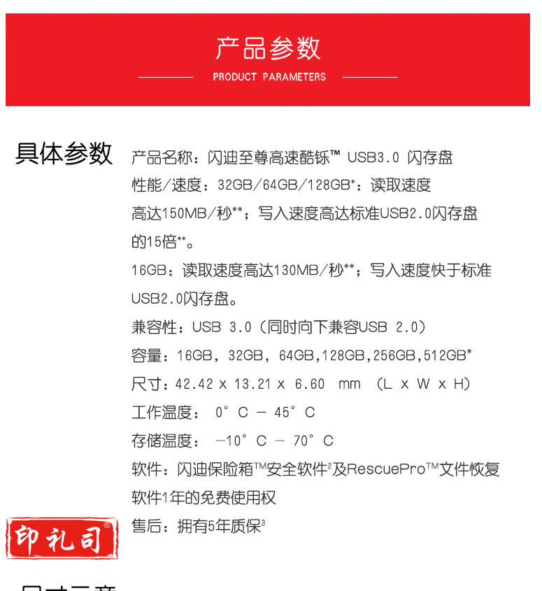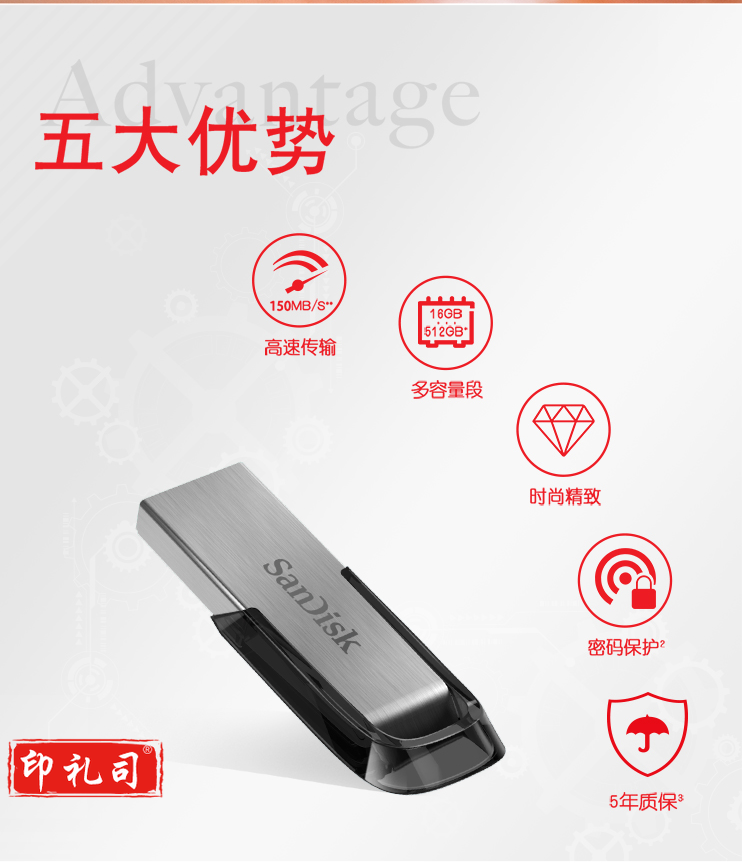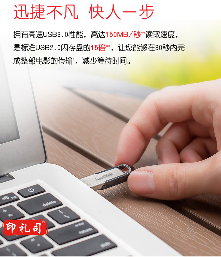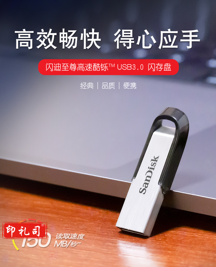 闪迪(SanDisk)128GB USB3.0 U盘 CZ73酷铄 银色 读速150MB/s 金属外壳 内含去安全加密软件