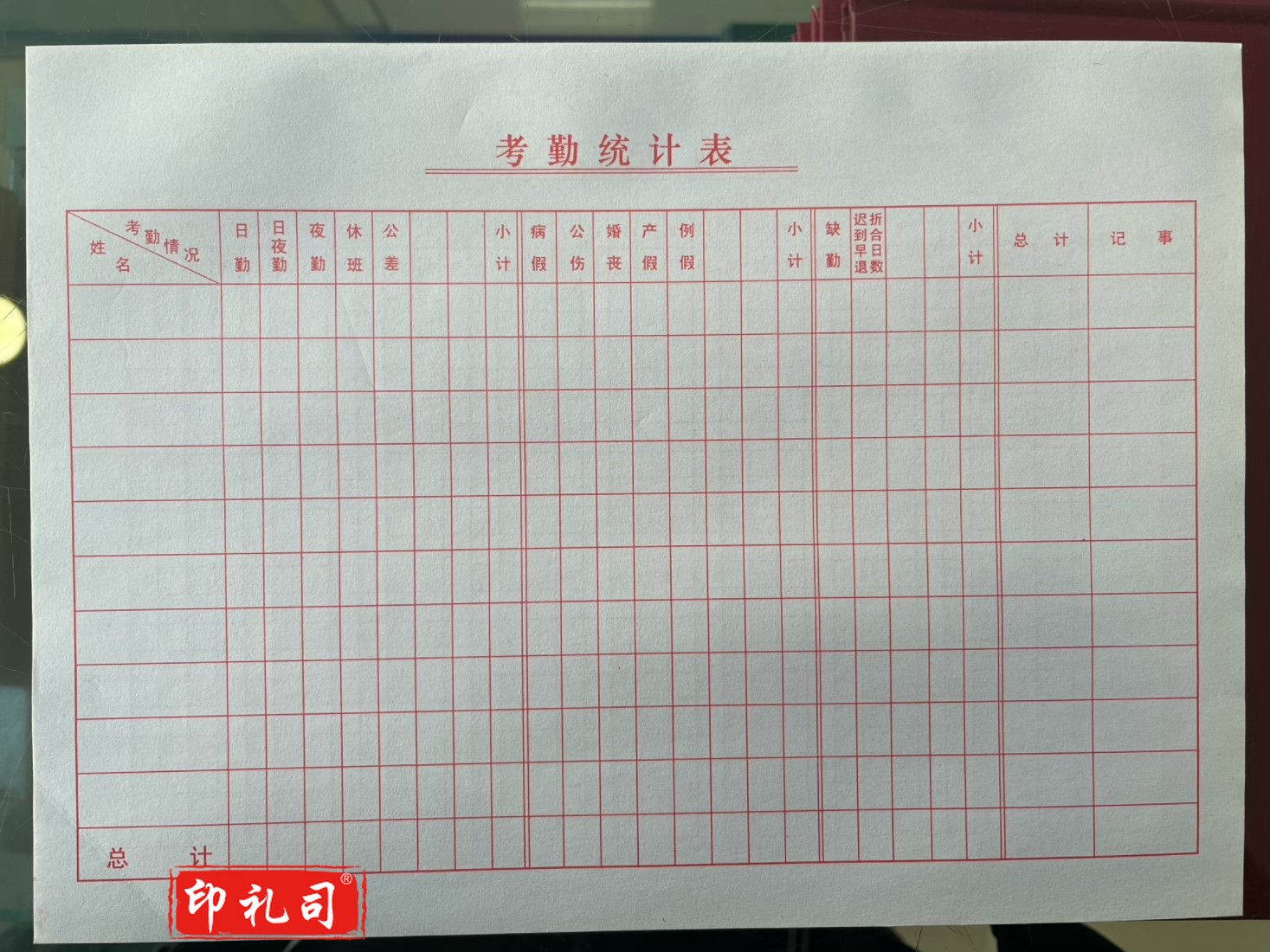考勤表记工本31天出勤表50张 5本装 考勤薄排班表上班登记簿记录本签到表