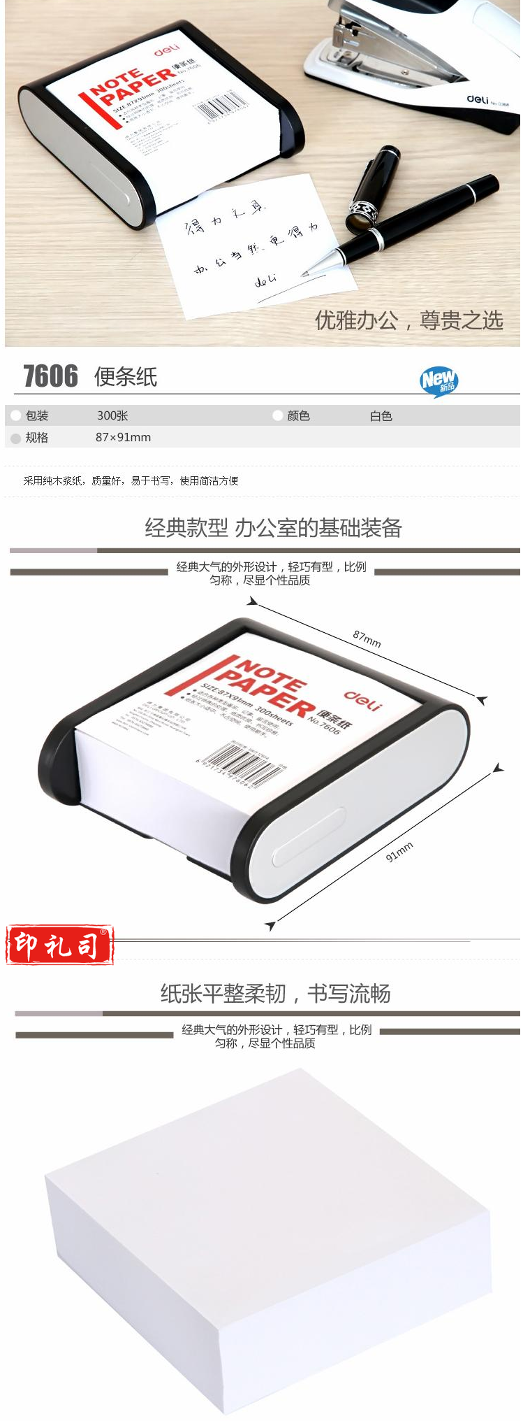 得力(deli)7606耐用便签纸便条纸便签本 办公用品 91*87 300张/盒(5盒)