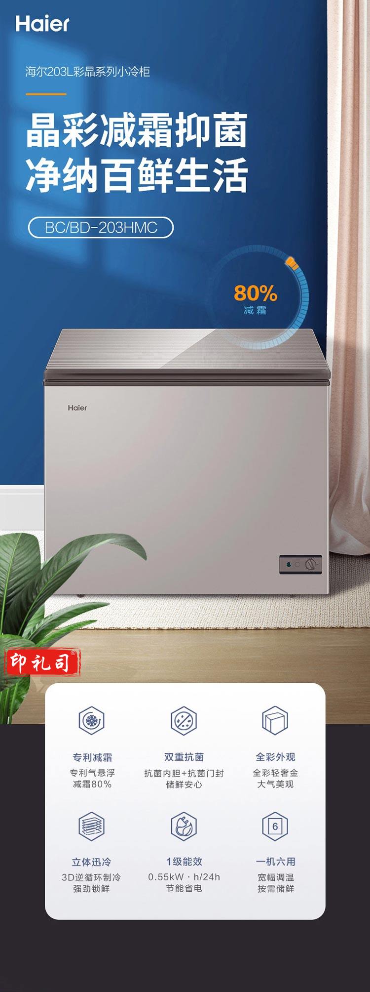 海尔冰柜 家用商用小型减霜冷藏冷冻转换柜一级能效冷柜