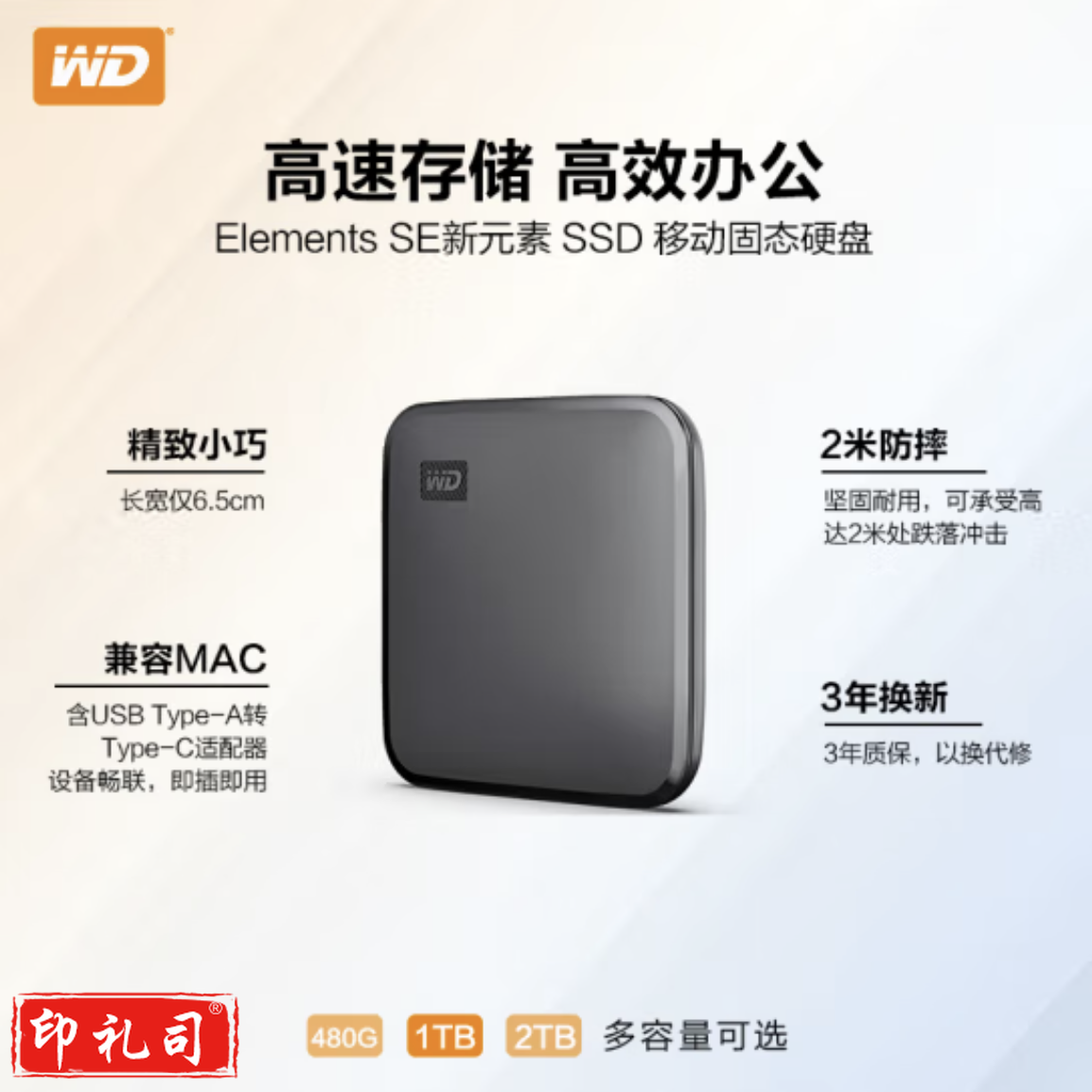 西部数据(WD) 1TB 移动固态硬盘(PSSD)Elements SE新元素 SSD type-c接口 手机笔记本外置外接