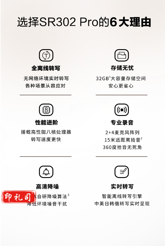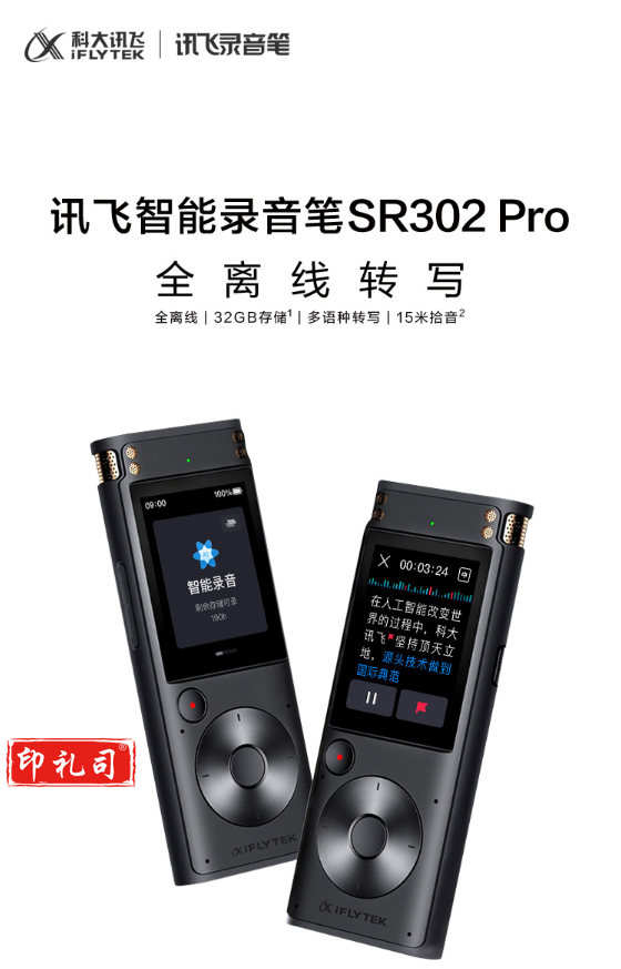 科大讯飞 SR302Pro 智能录音笔 32G内存 专业录音 高清降噪 离线实时转写 360°拾音 免费转写 星空灰