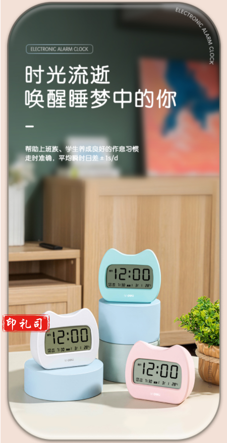 得力LE101-WH萌宠闹钟(白色)(1台/盒 赠送7号电池*2)