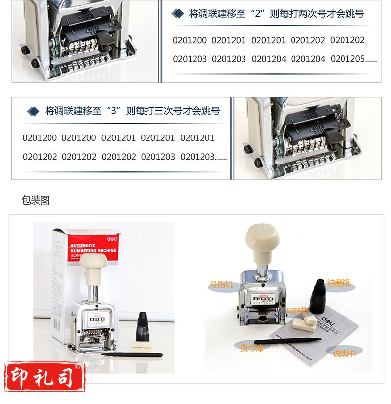 得力7507七位自动号码机(白)(台)