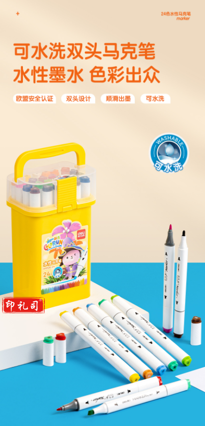 得力HM106-24_三角杆筒装水性马克笔(混)(24色/筒)