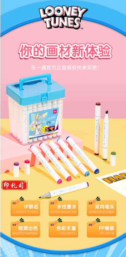 得力HM104-48_兔巴哥三角杆水性马克笔(混)(48色/筒)