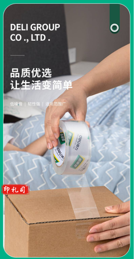得力JD91低噪音封箱胶带48mm*60y*50μm(高透)(1卷/热缩)