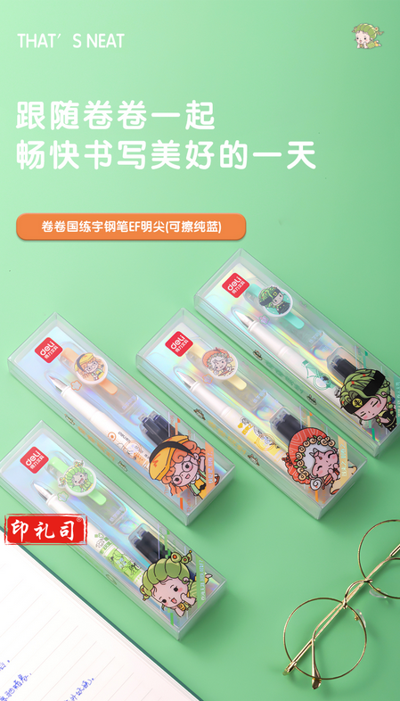 得力SF501卷卷国练字钢笔EF明尖(可擦纯蓝)(1笔+4墨囊/盒)