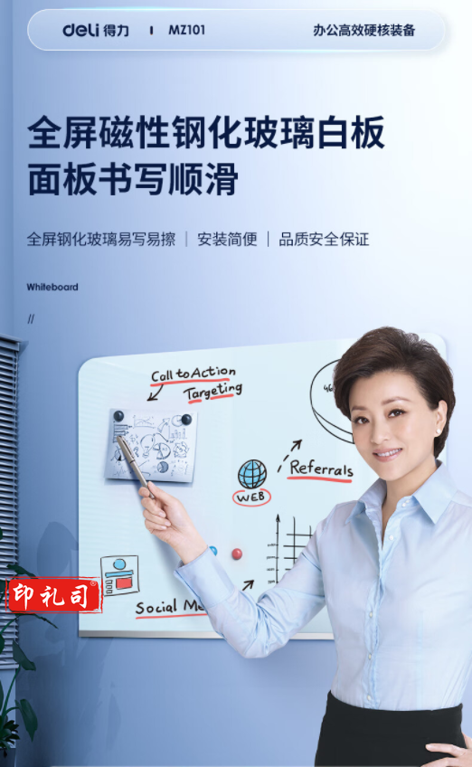 得力MZ101全屏玻璃白板900*1200mm(白)(块)