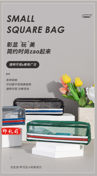 得力BC129网纱小方包多用途笔袋(混)(个)