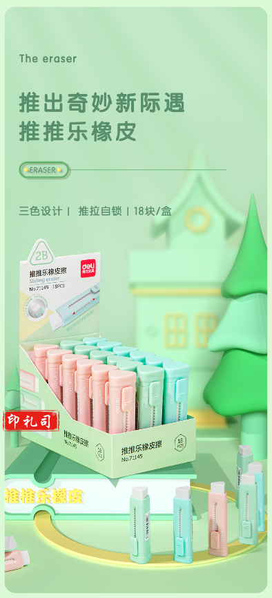 得力71145源源得力推推乐橡皮擦(混)(个)