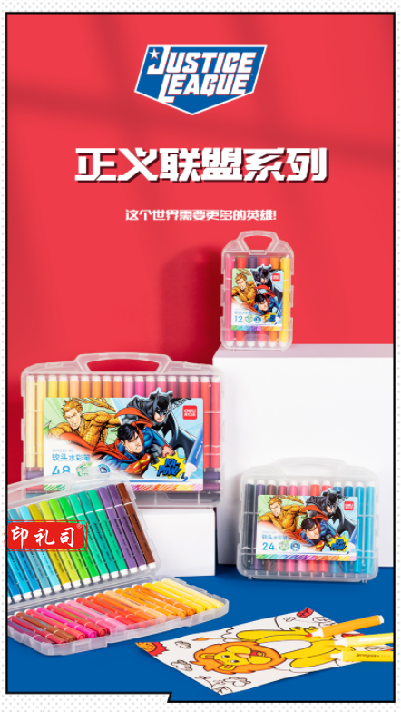 得力HM513-12_PP盒装正义联盟粗三角杆食品级软头水彩笔(混)(盒)