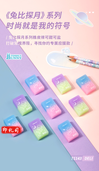 得力71143中国航天果冻色橡皮擦(混)(块)