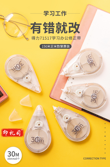 得力71517修正带套装_5mmx30m膜带(混)(卡)