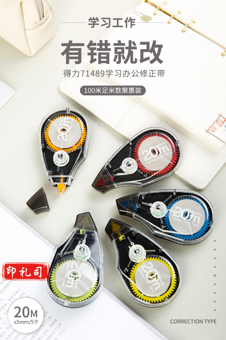 得力71489修正带套装_5mmx20m膜带(混)(卡)