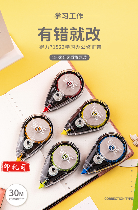 得力71523修正带套装_5mmx30m膜带(混)(卡)