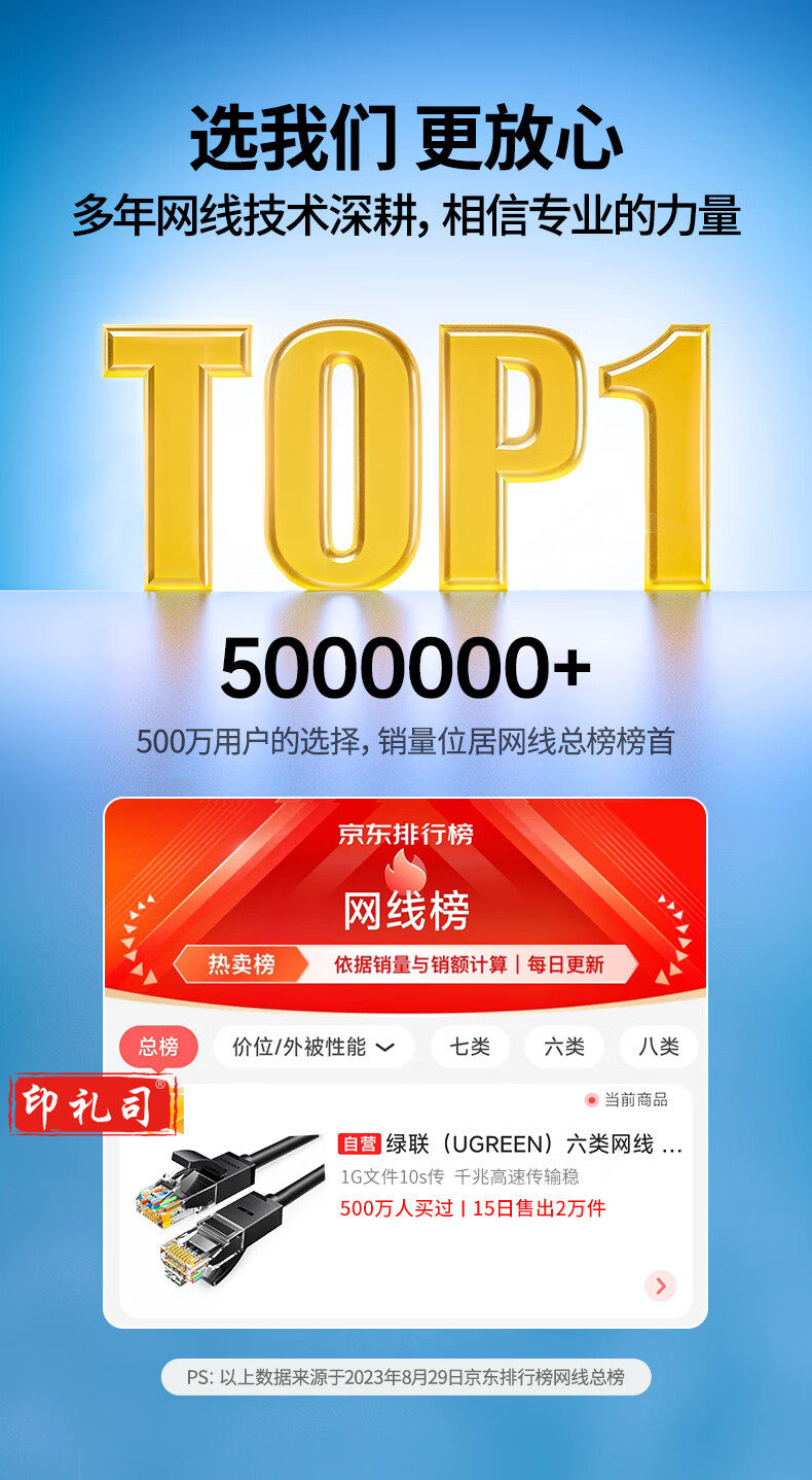 绿联(UGREEN)六类网线 千兆高速宽带线2米