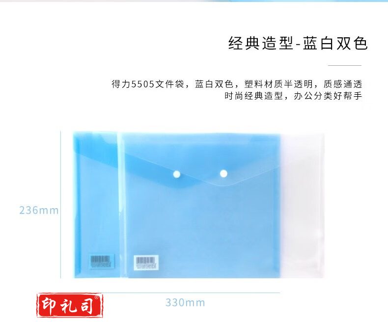得力(deli) 5505 A 4加厚透明按扣文件袋 单个装