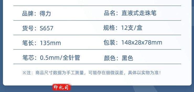得力 deli S657直液式走珠笔0.5mm红 12支/盒 单支