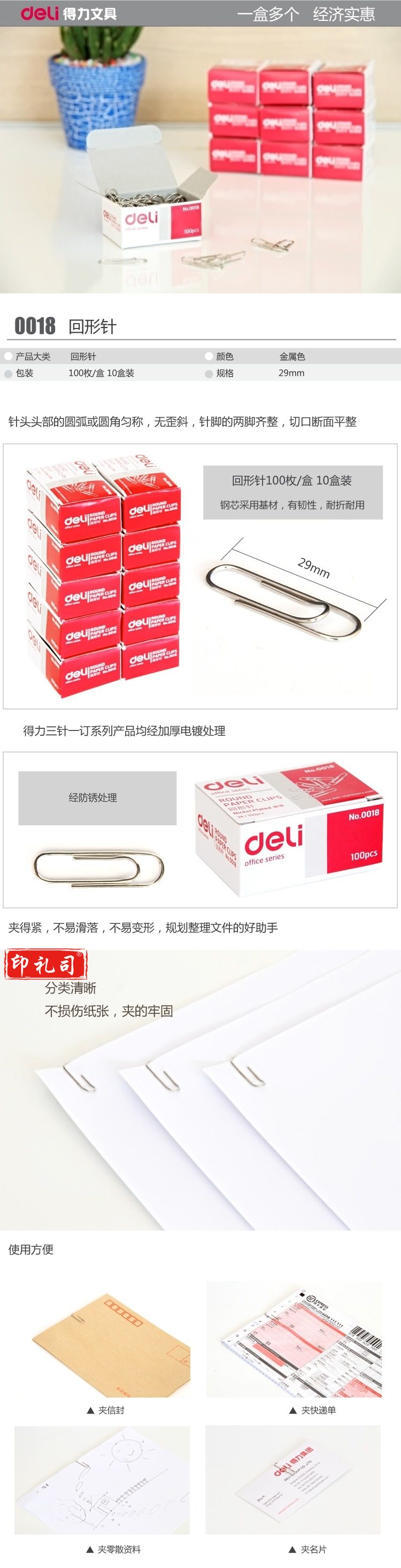 得力0018 回形针 100枚/盒 10盒/包
