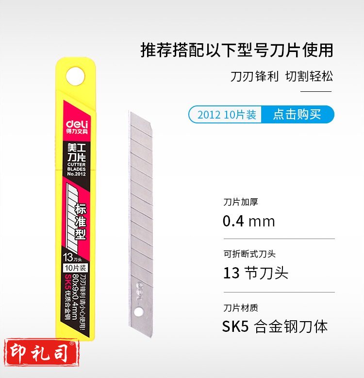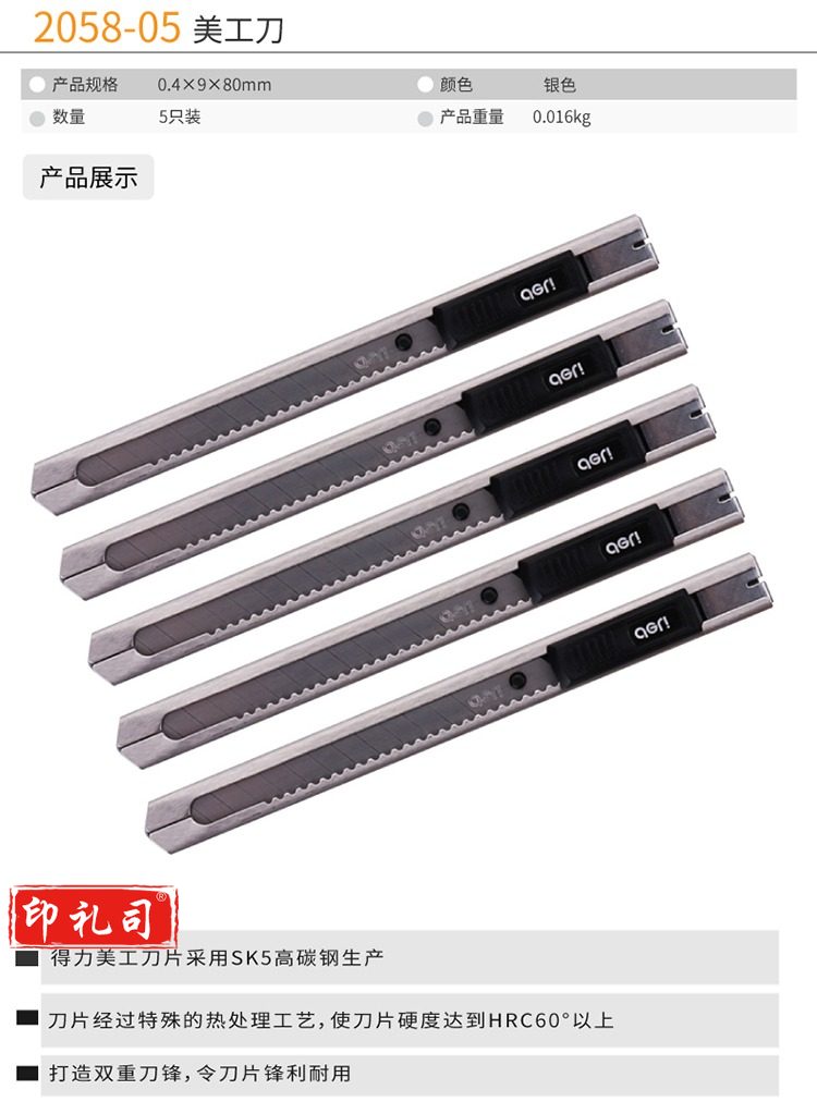 得力(deli) 2058-05 5把金属小号美工刀 自动锁裁纸刀小刀 办公用品 银色