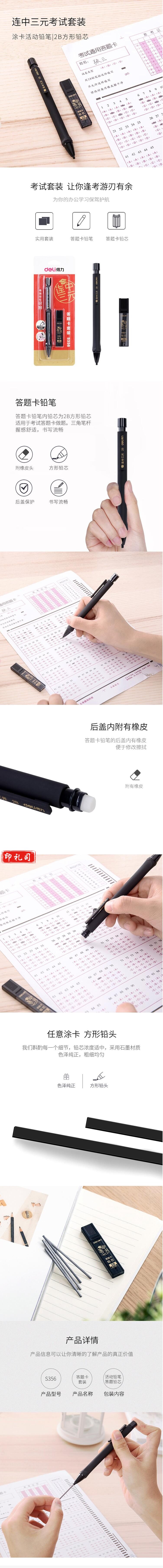 得力(deli)连中三元考试自动铅笔涂卡铅笔 含涂卡铅芯2B铅笔 考试可用 S356