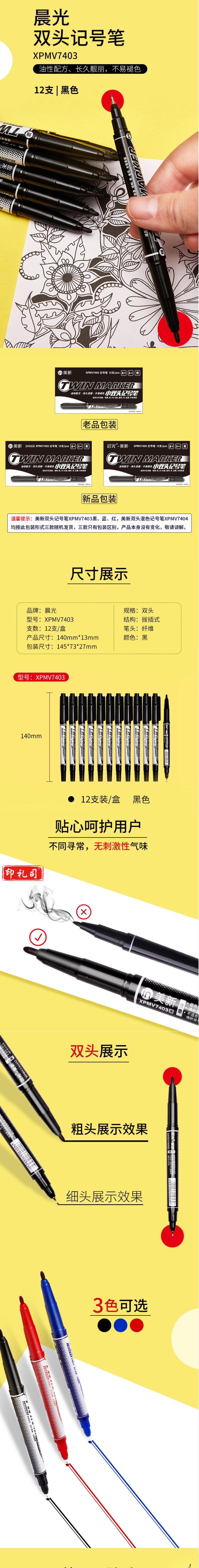 晨光记号笔 黑色双头细杆记号笔 重点标记记号笔 12支/盒XPMV7403 黑色记号笔单支装(黑)