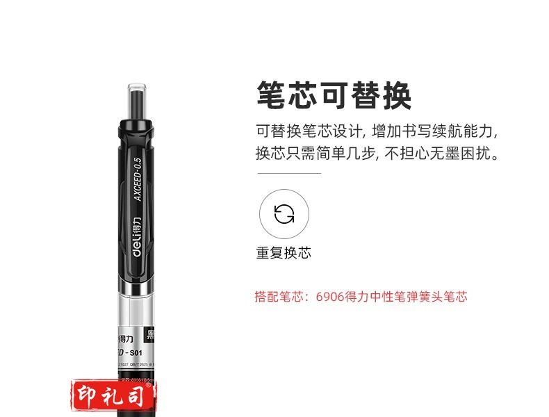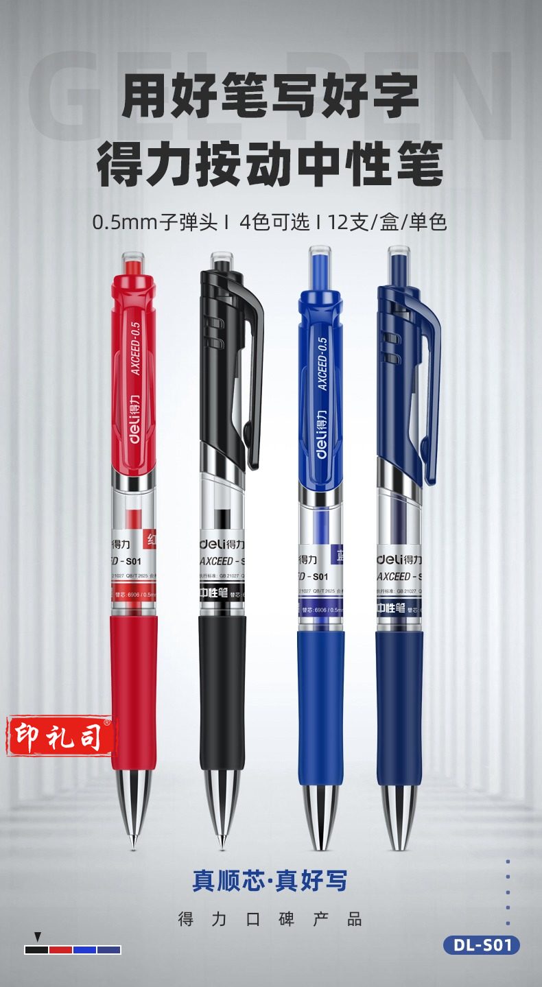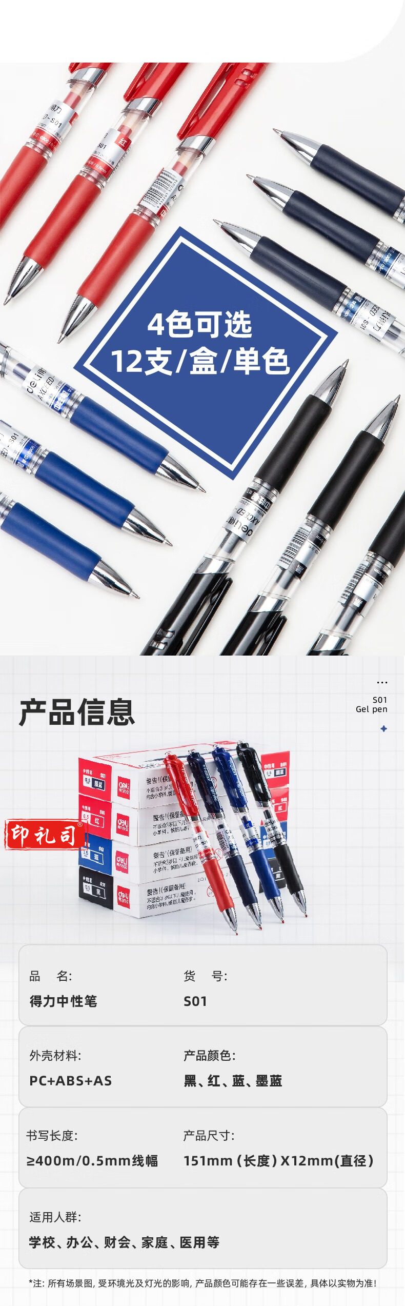 得力(deli)S01 中性笔签字笔 0.5mm子弹头 黑色 12支/盒