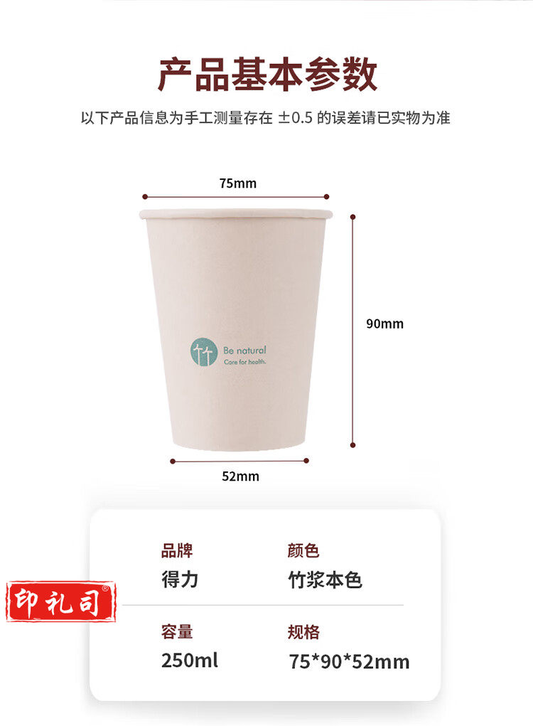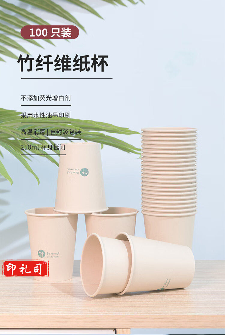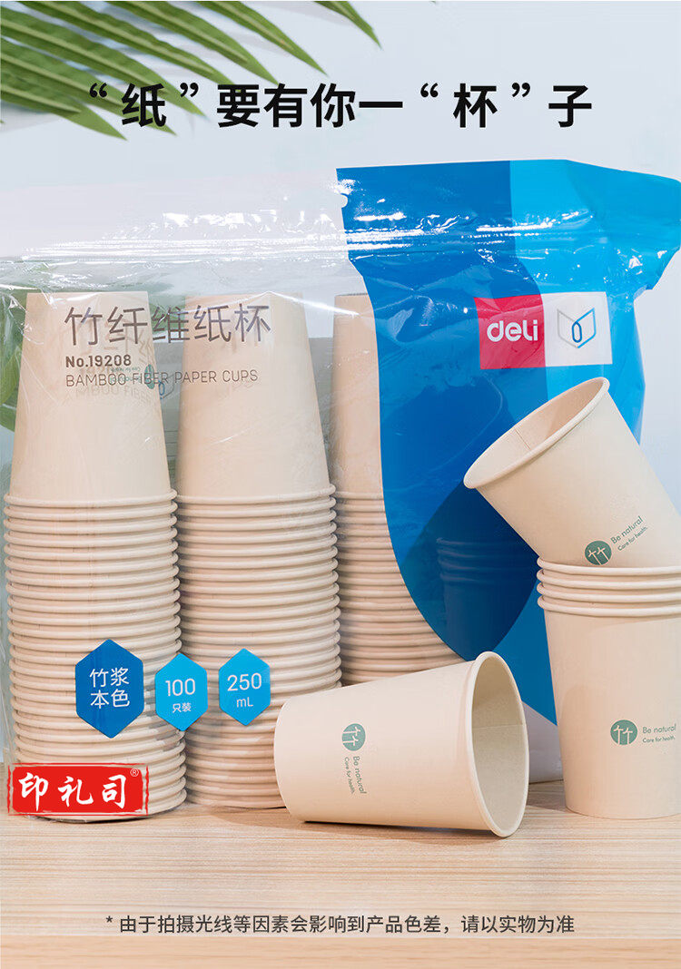 得力(deli)250ml竹纤维一次性杯子 水杯/纸杯 100只装