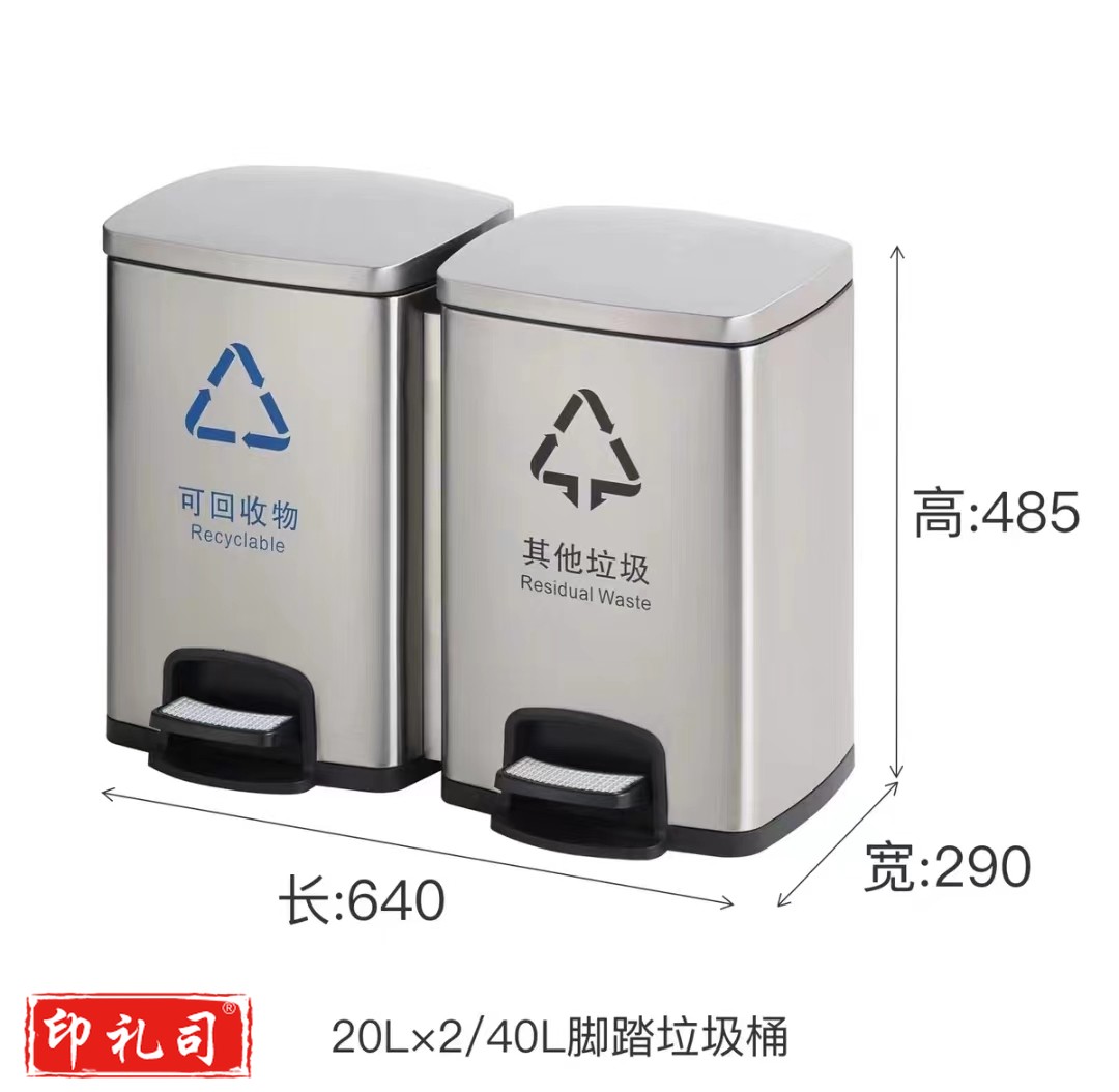 20L*2 40L不绣钢分类垃圾桶垃圾箱商用带盖办公室公共场合酒店脚踏式垃圾箱