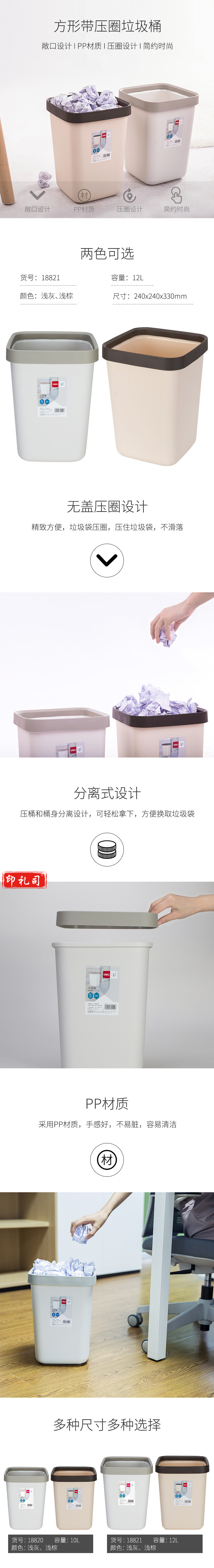 得力(deli)18821垃圾桶(浅灰)12L方形敞口