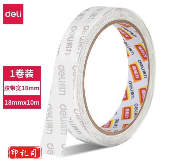 得力30413棉纸双面胶带18mm*10m*90um(白色)(卷)-强力款(10卷起售)