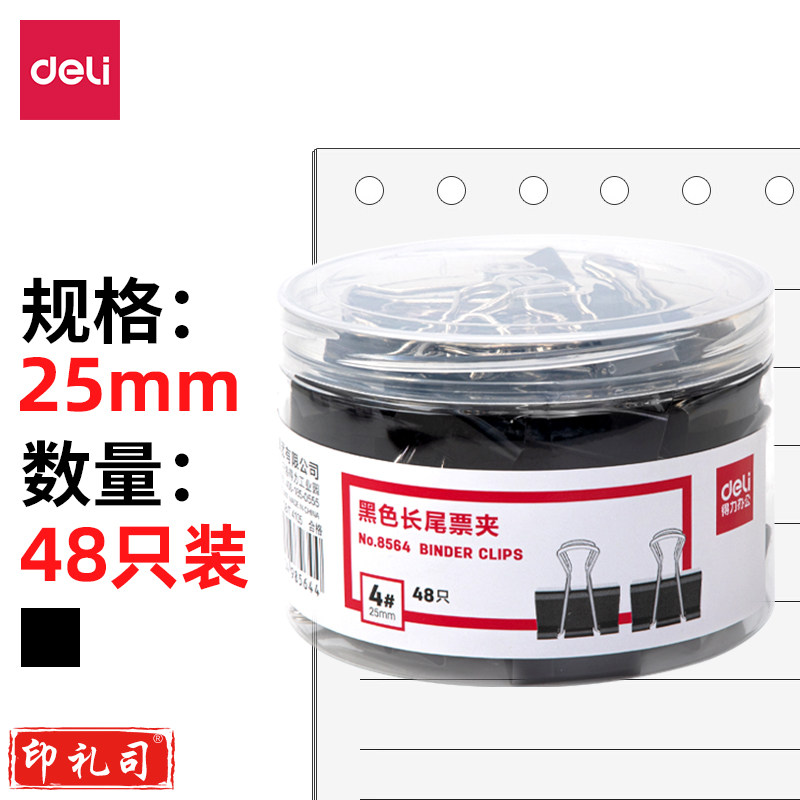 得力(deli)48只25mm黑色长尾夹票夹 金属燕尾夹票据夹子 中号8564(